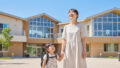 保育園を卒園し、小学校の門の前に立つ親子。何歳まで保育園に通えるか、その後の小1の壁について解説する記事のアイキャッチ画像。 保育園基本情報